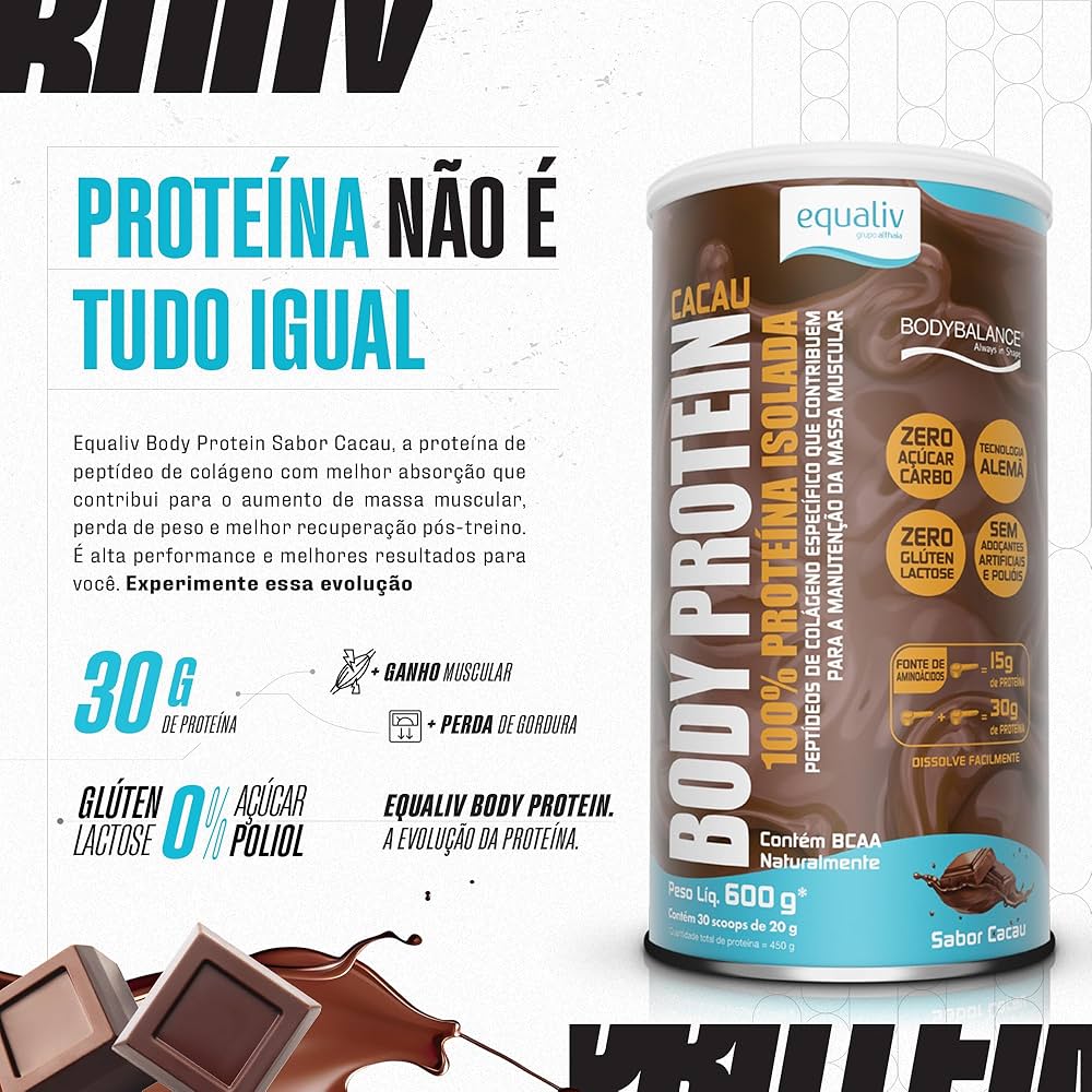Proteína isolada e hidrolisada à base de peptídeos de colágeno, com a tecnologia inovadora alemã BODYBALANCE®.